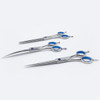 These affordable all-purpose grooming shears are made from High Carbon Japanese steel. Feature a semi-convex edge that is durable and effortlessly cuts through all coat types. Includes 7" Straight, 7" Curved, 7" 54 Tooth Thinner and case.
