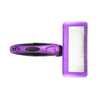 The SureGrip Curved Slicker Brush is durable and recommended for daily use in busy salons. This brush has stainless steel pins that are cushioned to ensure a comfortable brushing experience for the animal.